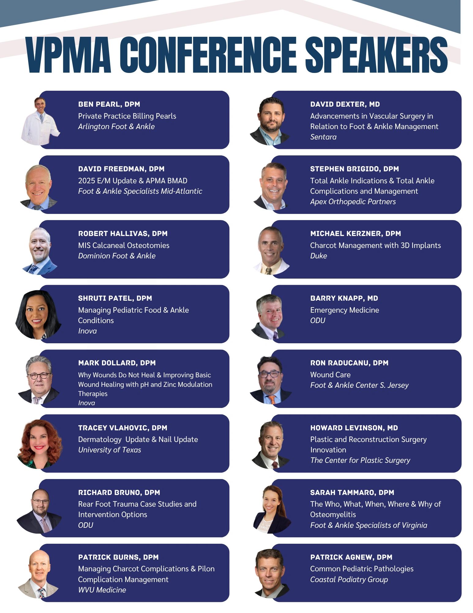 The Virginia Podiatric Medical Association has been approved by the Council on Podiatric Medical Education as a provider of continuing education in podiatric medicine. The Virginia Podiatric Medical Association has approved this activity for a maximum of 25 continuing education contact hours.